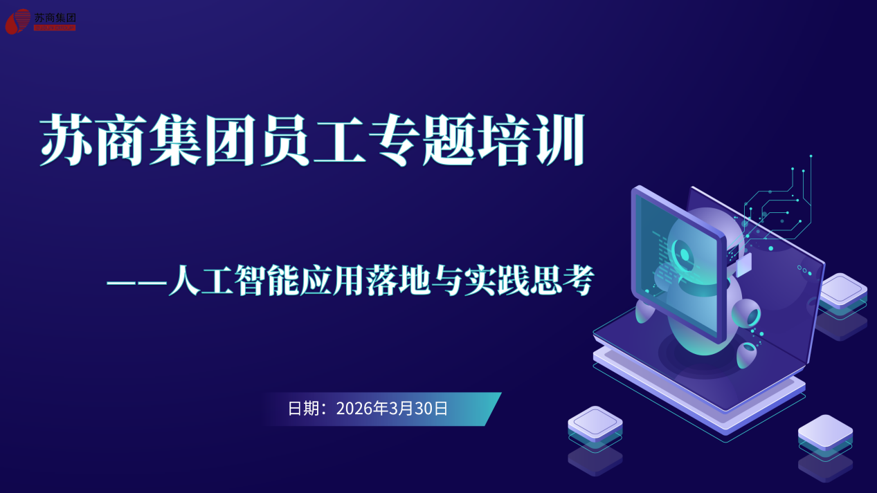 2026年3月30日下午,南京蘇商投資發(fā)展(集團)有限公司在集團總部舉辦了一場以“AI人工智能應用落地與實踐思考”為主題的專題培訓。活動特邀南京郵電大學數(shù)字經(jīng)濟研究所所長、知名數(shù)字經(jīng)濟專家姚國章教授擔任主講嘉賓,集團高管及各部門員工代表共計50余人參加了此次培訓。